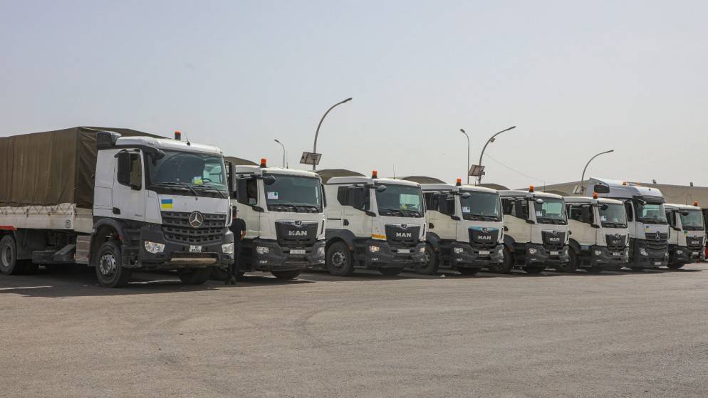 الاردن يسير 10 شاحنات محملة بالمواد الغذائية والإغاثية لسوريا