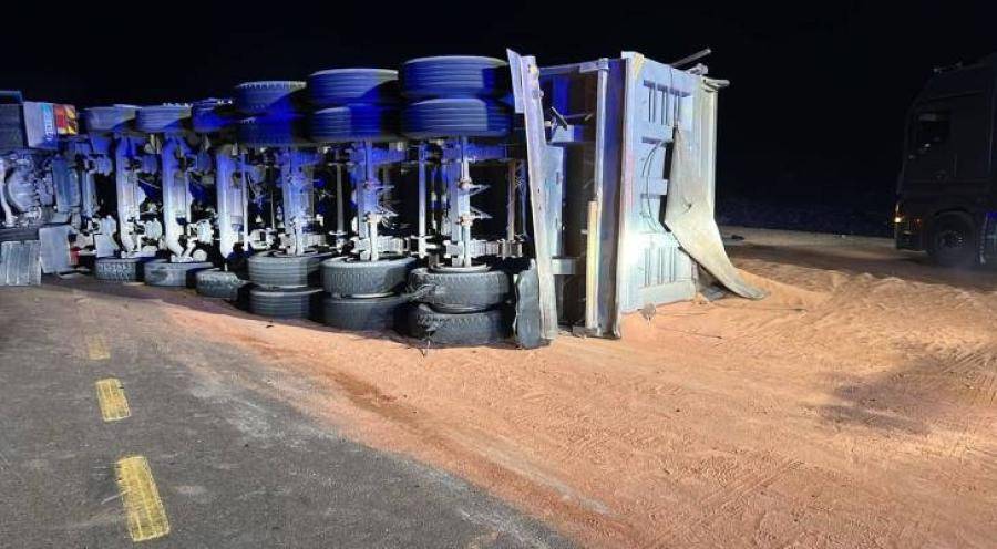 عاجل-انقلاب شاحنة فوسفات يعيق السير ويغلق الطريق الصحراوي