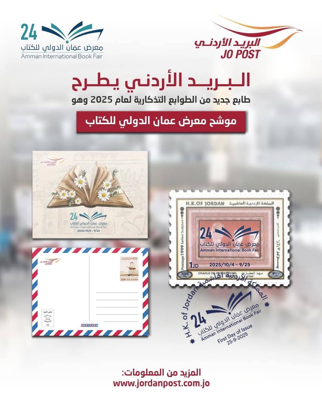 البريد الأردني يطرح طوابع تذكارية بعنوان (موشح معرض عمان الدولي للكتاب)