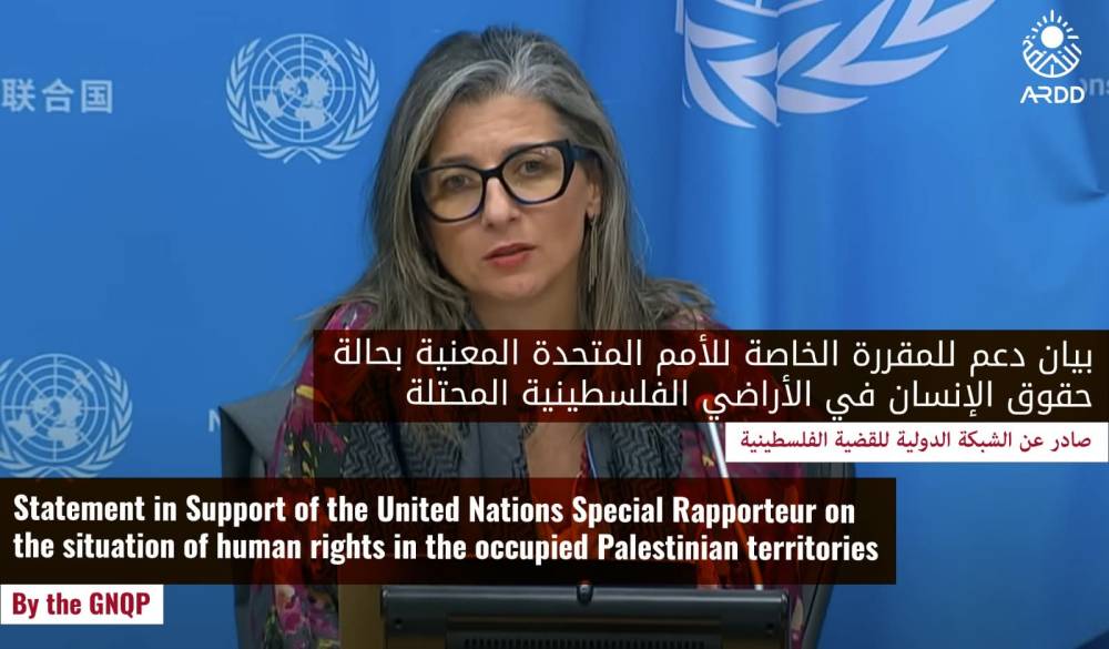 بيان دعم المقررة الخاصة للأمم المتحدة المعنية بحالة حقوق الإنسان في الأراضي الفلسطينية المحتلة