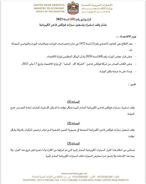 الامارات تمنع استيراد فولكس فاجن الصينية2023-03-08 18:41:21 -