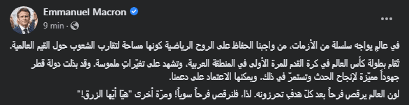 ماكرون عن المونديال: قطر بذلت جهوداً مميّزة2022-11-26 21:03:46 -