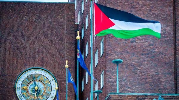 رفع العلم الفلسطيني أمام مقر بلدية أوسلو