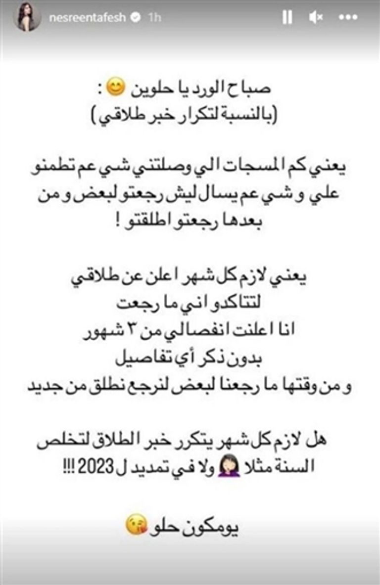 نسرين طافش: ليه لازم أعلن طلاقي كل شهر؟2022-11-23 22:07:27