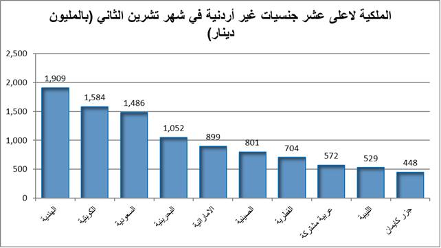 الملكية لأعلى عشر جنسيات غير أردنية في شهر تشرين الثاني من العام 2025