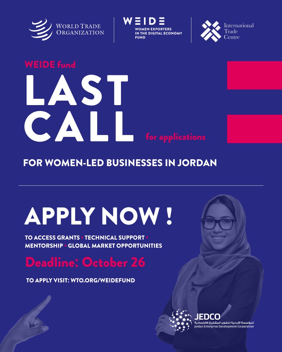جيدكو تدعو المشاريع الصغيرة والمتوسطة التي تمتلكها النساء إلى المسارعة بالتقديم للاستفادة من صندوق النساء المصدّرات في الاقتصاد الرقمي قبل 26 تشرين الأول 2025