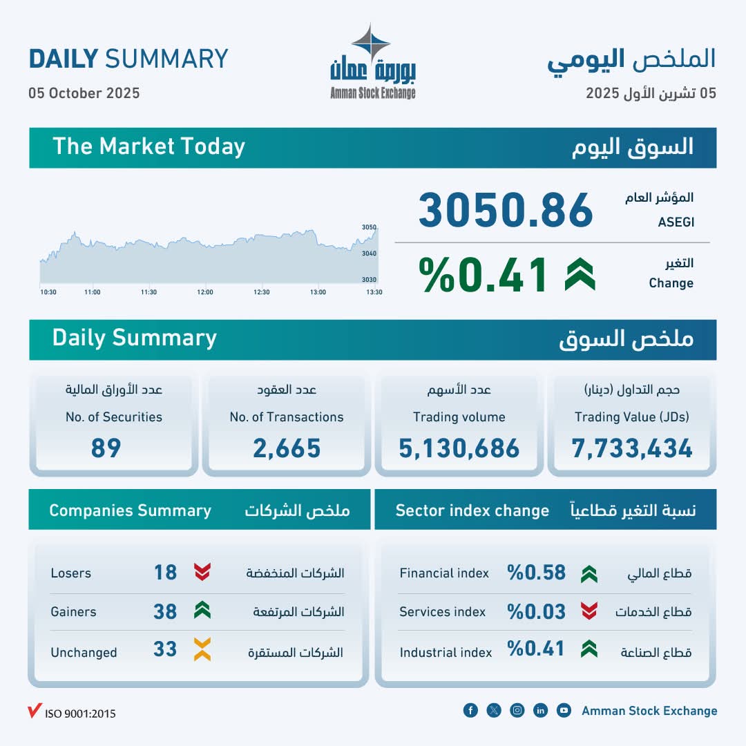 الملخص اليومي لبورصة عمان2025-10-06 -