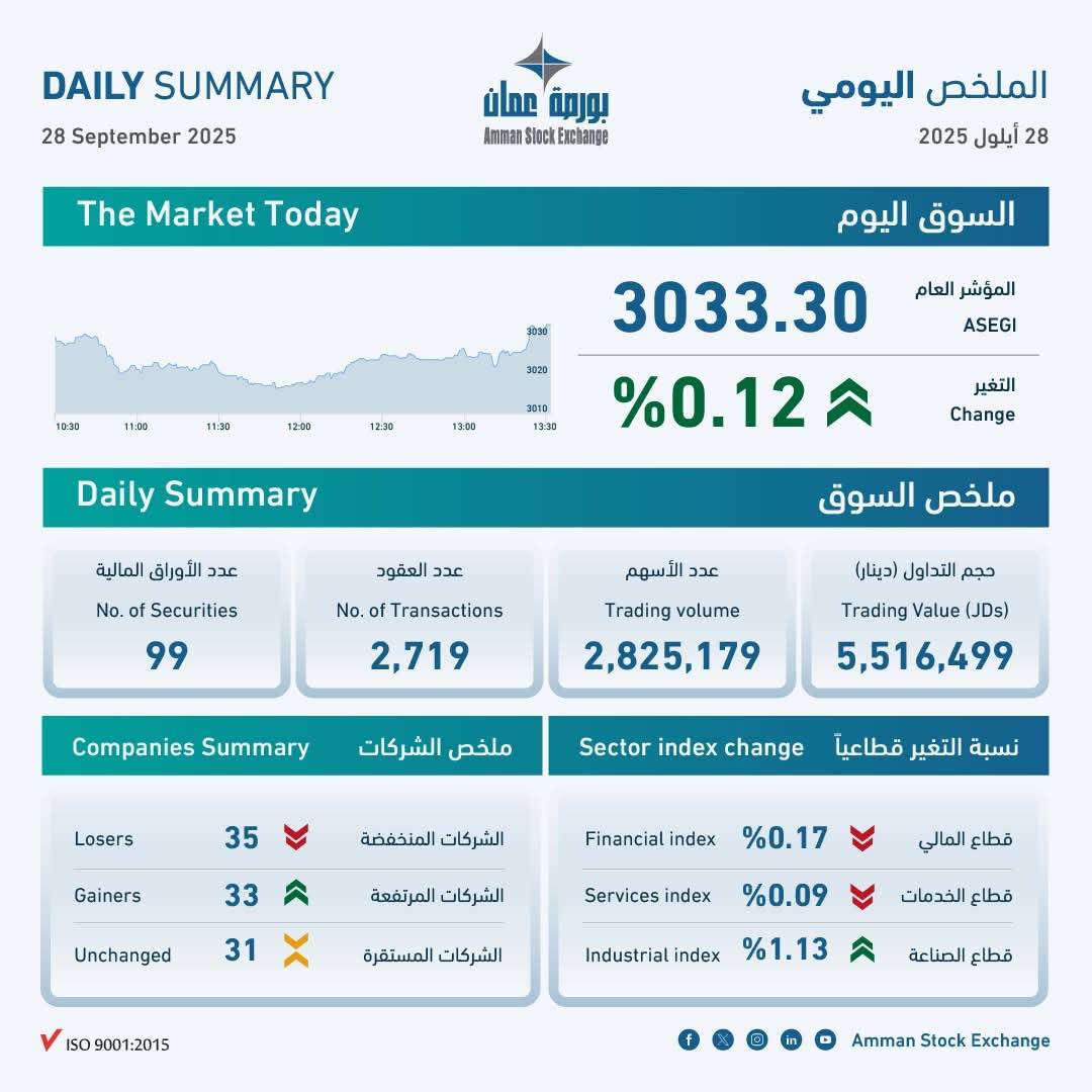 الملخص اليومي لبورصة عمان2025-09-28 -