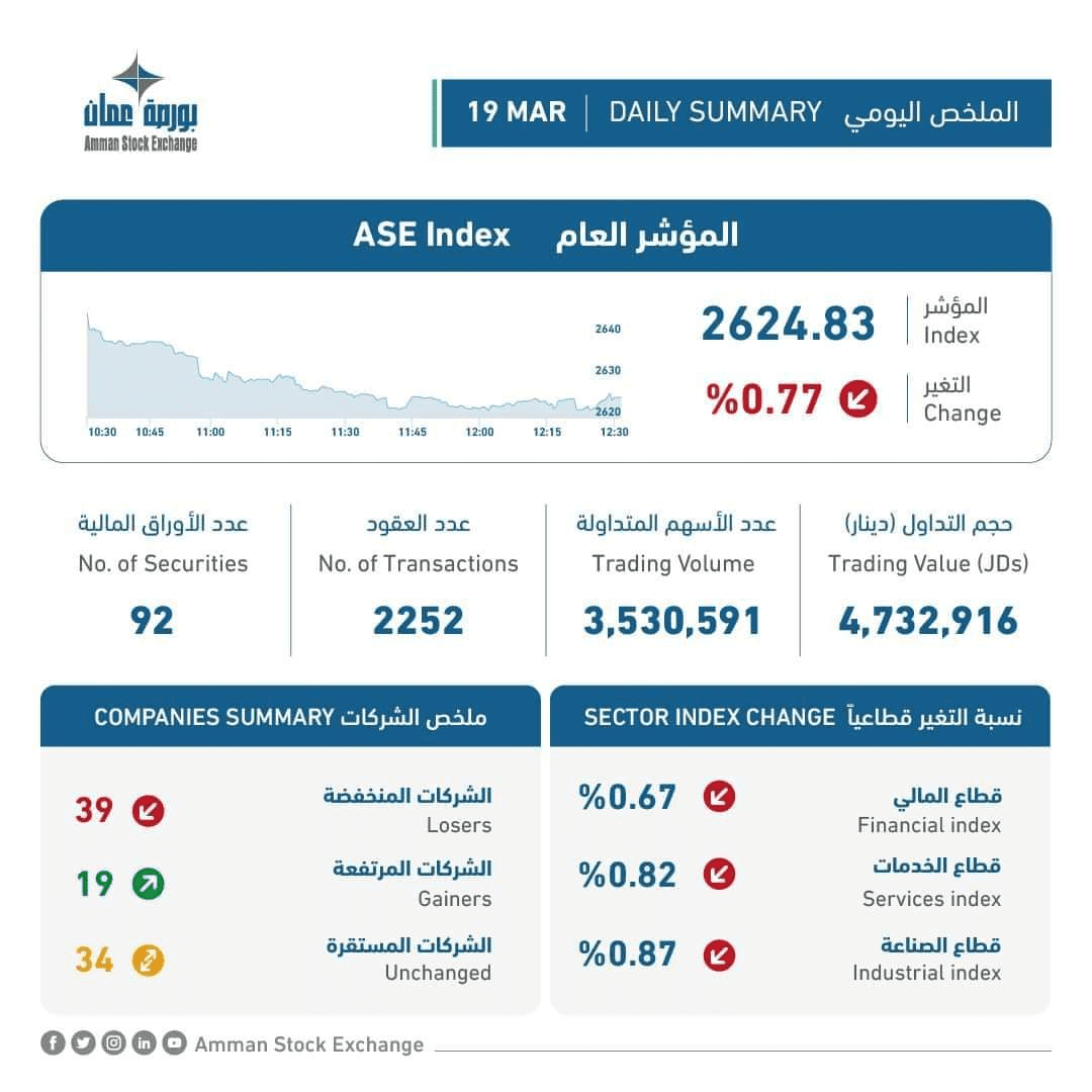الملخص اليومي لبورصة عمان2023-03-19 16:25:09 -