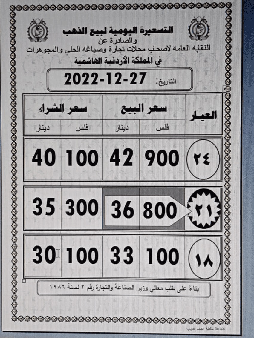 استقرار أسعار الذهب بالأردن لليوم الثالث2023-02-19 09:12:21 -