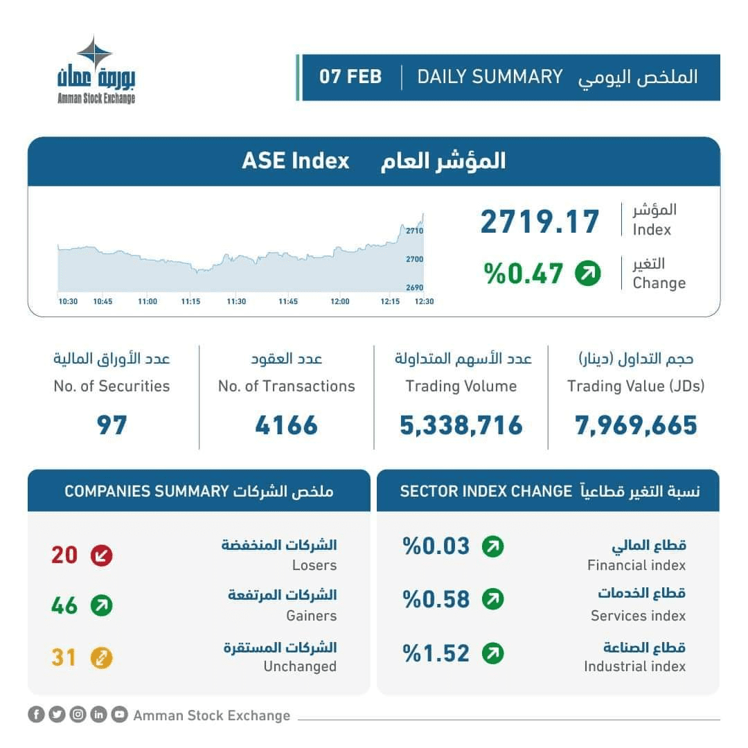 الملخص اليومي لبورصة عمان2023-02-07 15:51:50