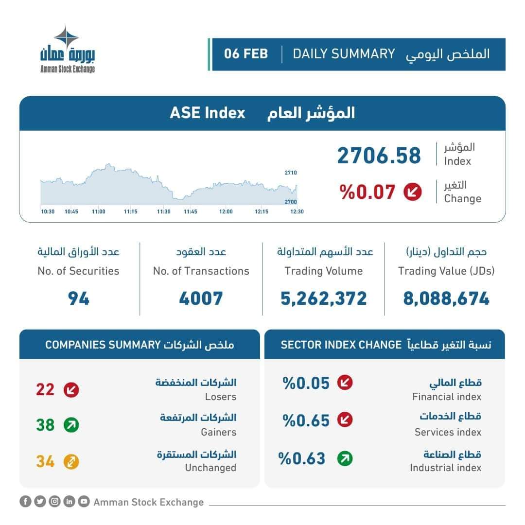 مؤشر البورصة ينهي تعاملاته اليومية على انخفاض2023-02-06 21:09:08 -