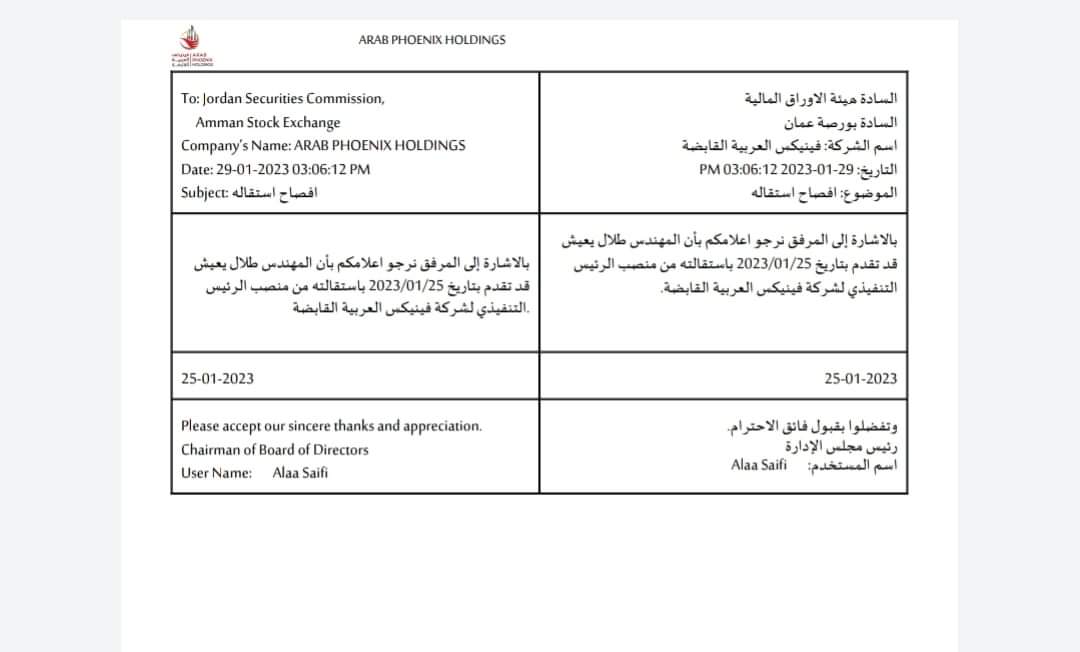 الرئيس التنفيذي لشركة فينيكس يقدم استقالته2023-01-29 17:14:59 -