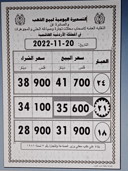 استقرار أسعار الذهب بالأسواق الأردنية2022-11-20 10:13:30 -