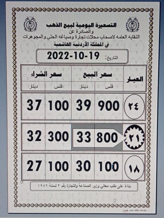 انخفاض أسعار الذهب في الأردن2022-10-19 10:24:18 -