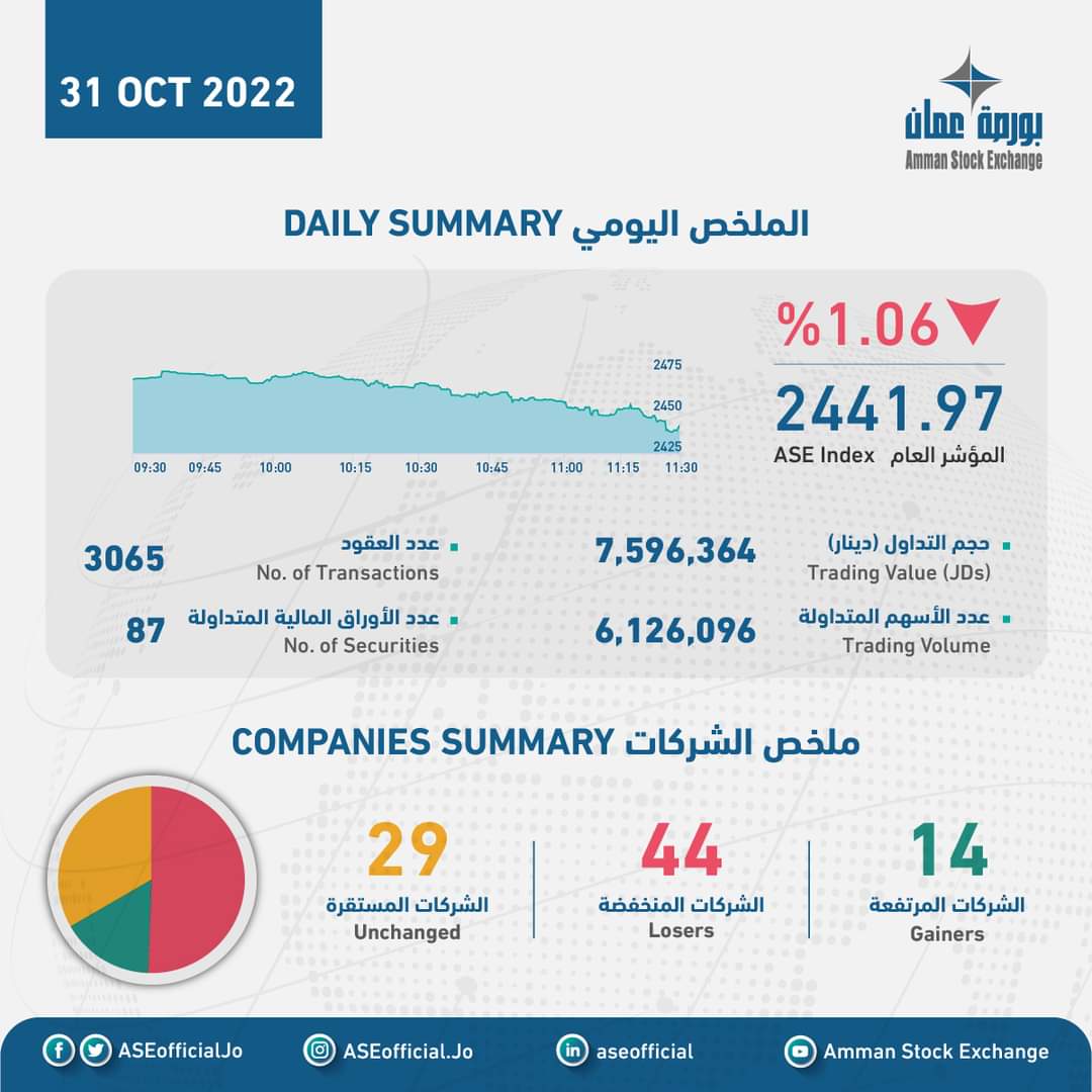 الملخص اليومي للبورصة2022-10-31 13:32:22 -