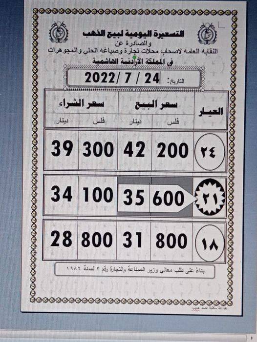 أسعار الذهب في الأردن2022-07-24 08:52:54 -