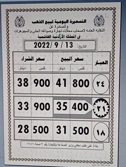 أسعار الذهب في الأردن2022-09-13 09:37:50 -