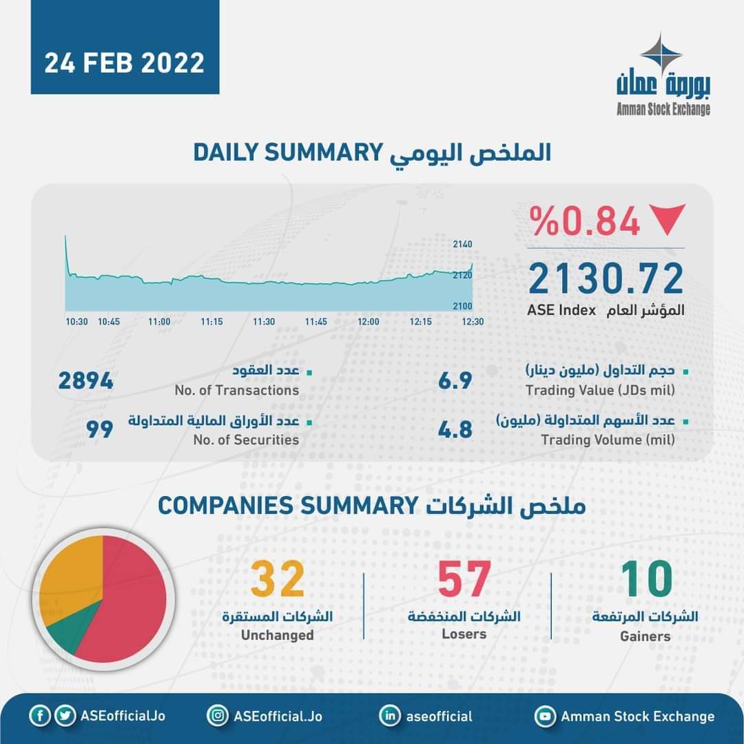 تَعرّف على أداء بورصة عمان مع أول يوم لاندلاع الحرب في أوكرانيا2022-02-24 14:56:03 -