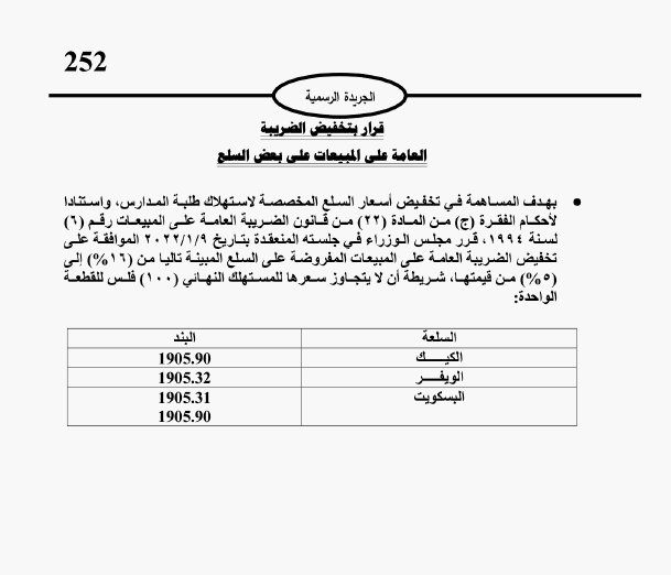 تخفيض ضريبة المبيعات على الكيك والويفر والبسكويت2022-01-12 18:00:57 -
