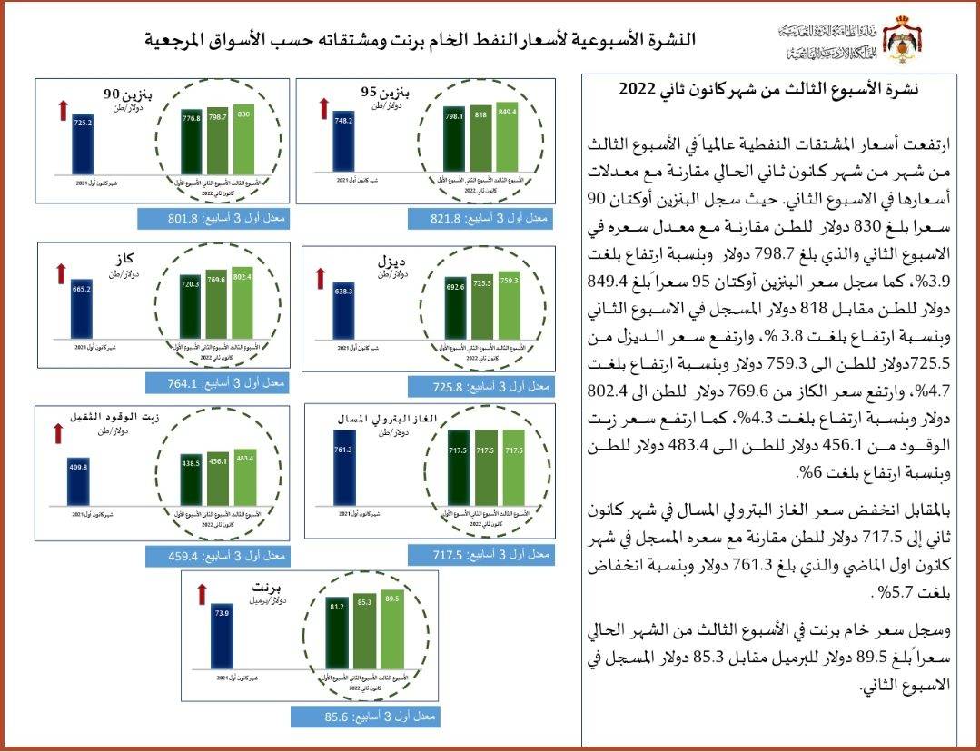 ارتفاع الفاتورة النفطية للمملكة إلى 6ر1 مليار دينار2022-01-26 14:30:56 -