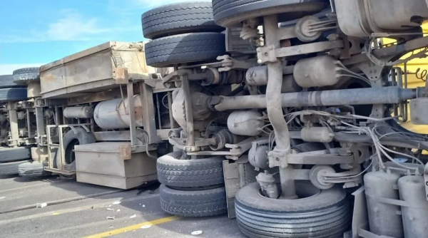 قطع مؤقت لحركة السير بسبب تدهور "تريلا" أعلى جسر خو