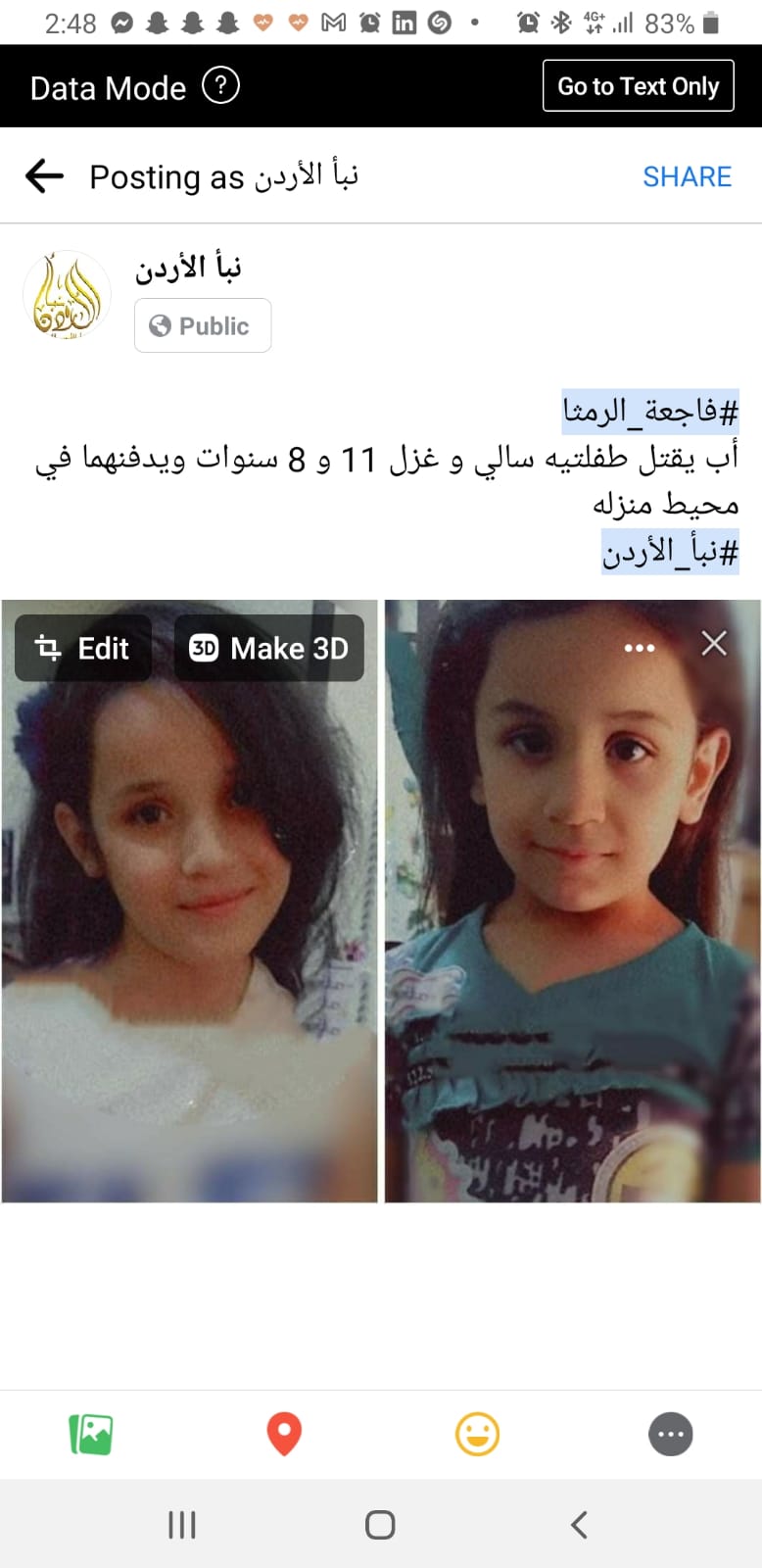 فاجعة في الرمثا " قتل طفلتيه ودفنهما في محيط منزله (تفاصيل)2022-07-05 08:49:55 -