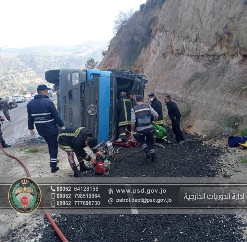 تدهور مركبتي شحن على طريق إربد – عمان (صور)2022-02-22 09:54:38 -