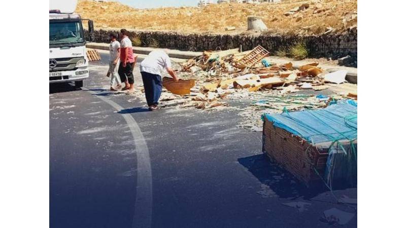 سقوط حمولة شاحنة يتسبب بأزمة على طريق المطار