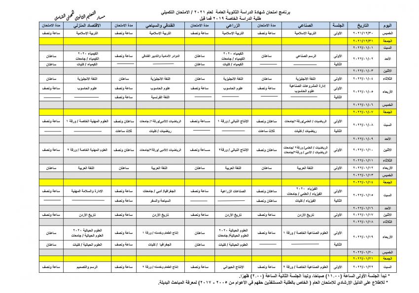 #عاجل| تفاصيل برنامج امتحانات تكميلية التوجيهي2021-11-01 12:10:26 -