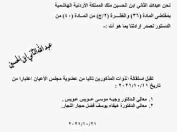 قبول استقالة عويس والنجار من الأعيان2021-11-01 22:56:24 -