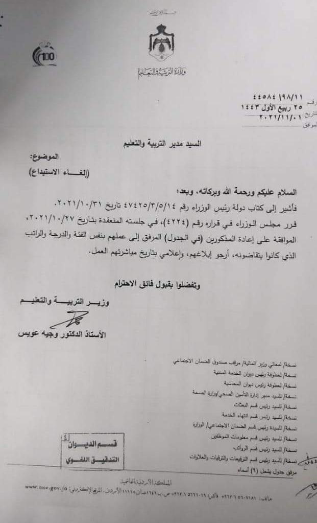 بالأسماء .. إعادة معلمين مُحالين للإستيداع الى العمل2021-11-02 12:34:40 -