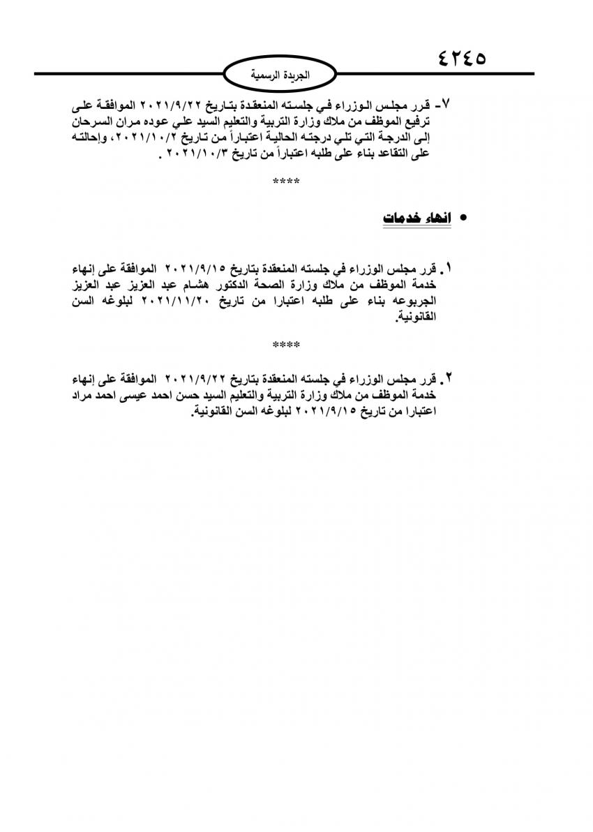 بالأسماء .. إحالة موظفين حكوميين إلى التقاعد2021-09-30 16:24:12 -