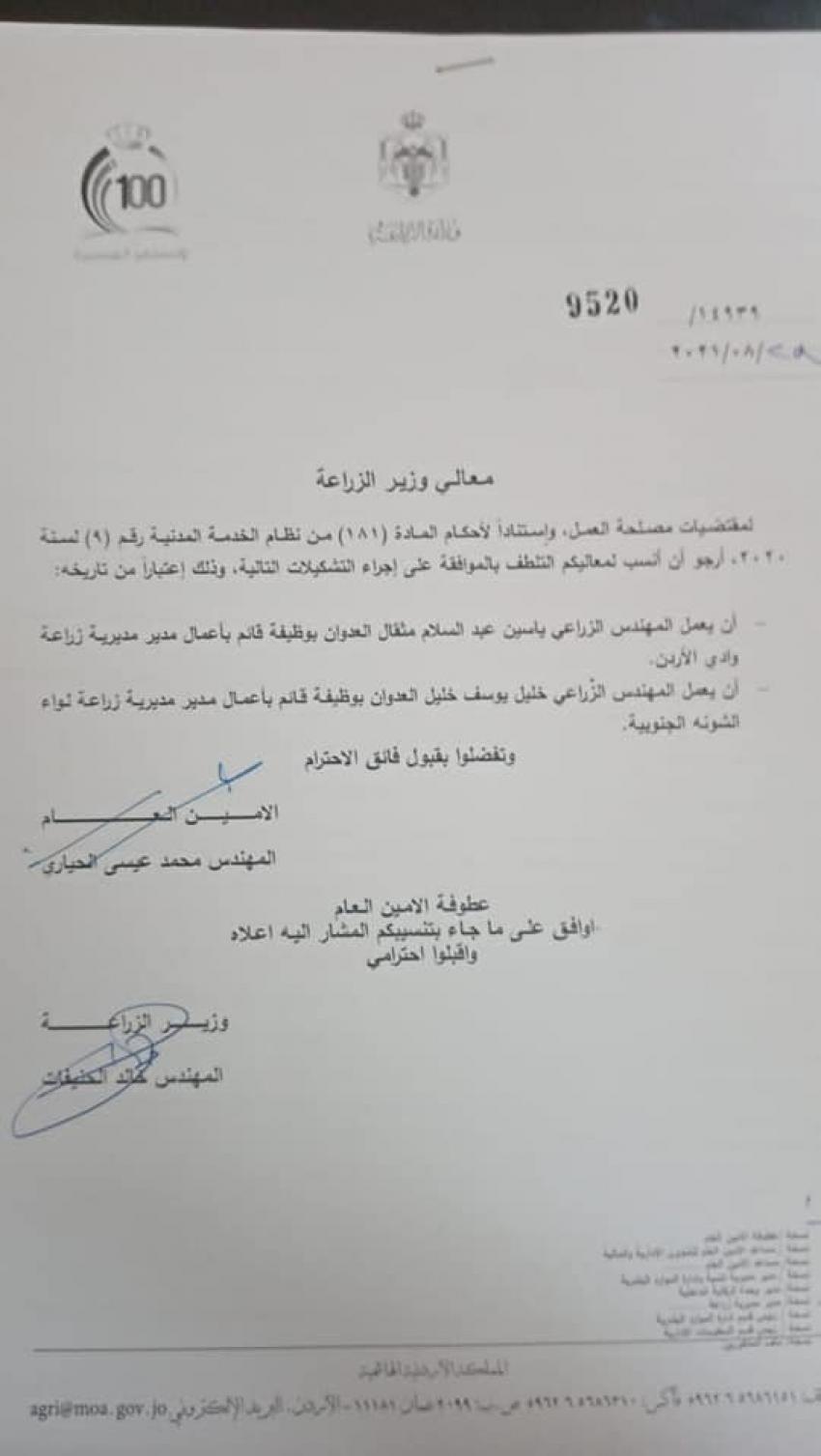 بالأسماء.. تنقلات في وزارة الزراعة2021-08-29 10:31:52 -