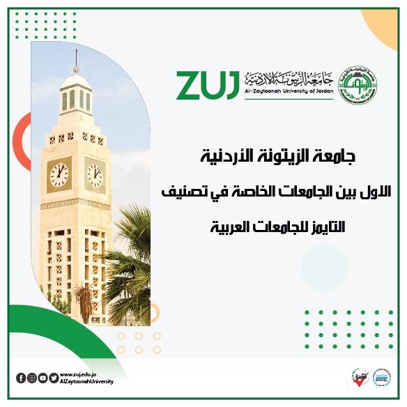 جامعة الزيتونة الاردنية في المرتبة الاولى على مستوى الجامعات الخاصة في تصنيف التايمز