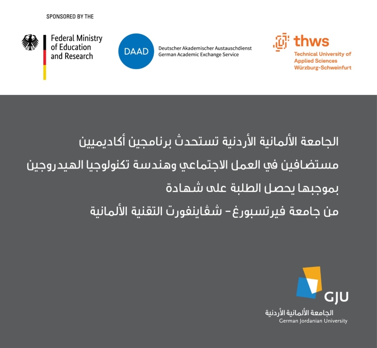 الجامعة الألمانية الأردنية تستحدث برنامجين أكاديميين مستضافين في العمل الاجتماعي وهندسة تكنولوجيا الهيدروجين