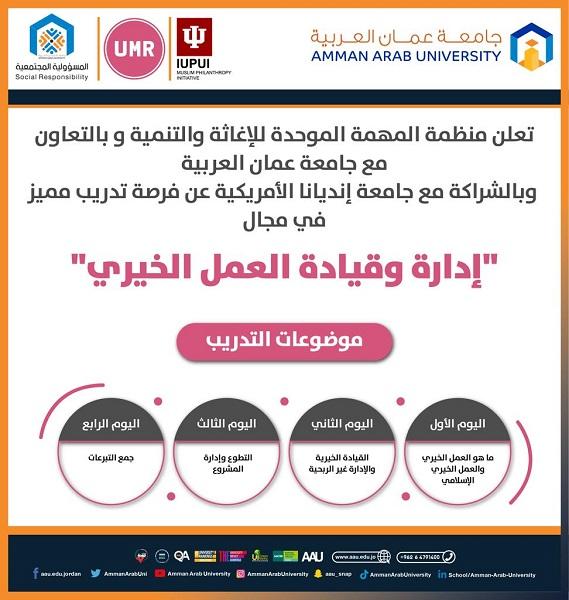 عمّان العربية ومنظمة المهمة الموحدة تطلقان دورة إدارة وقيادة العمل الخيري
