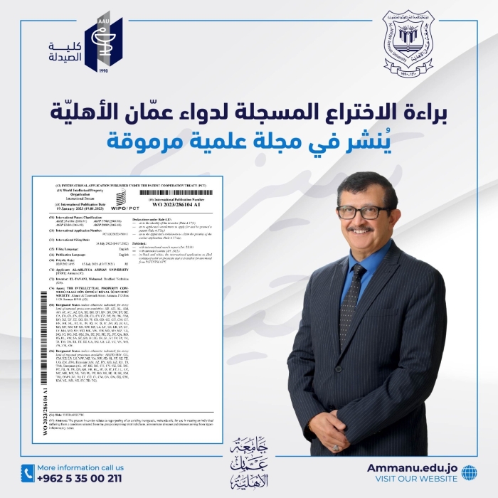 براءة الاختراع المسجلة لدواء عمان الأهلية تنشر في مجلة علمية مرموقة