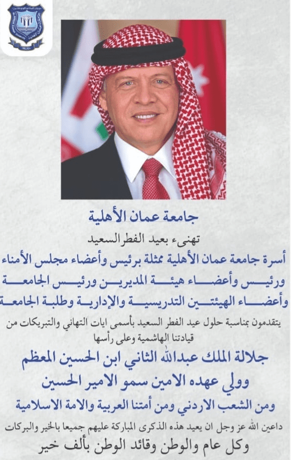 أسرة الجامعة الأردنية تتبادل التهاني بمناسبة عيد الفطر2023-04-25 16:33:26 -
