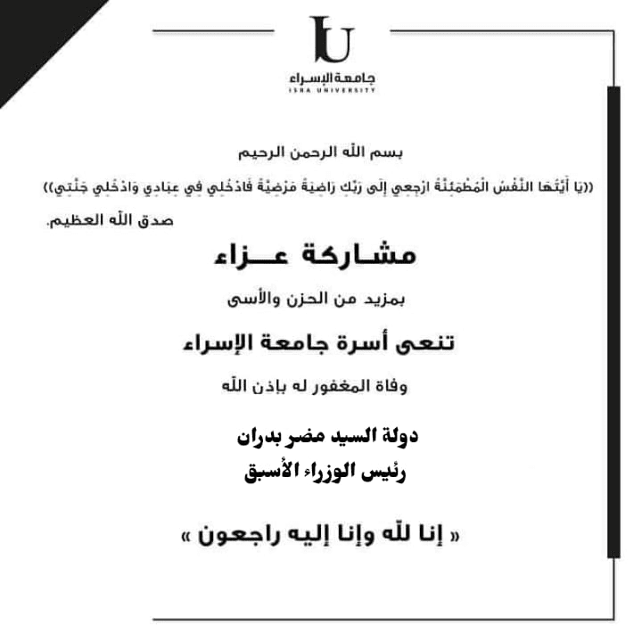 أسرة جامعة عمان الاهلية تعزي بوفاة المرحوم دولة مضر بدران2023-04-23 13:15:22 -