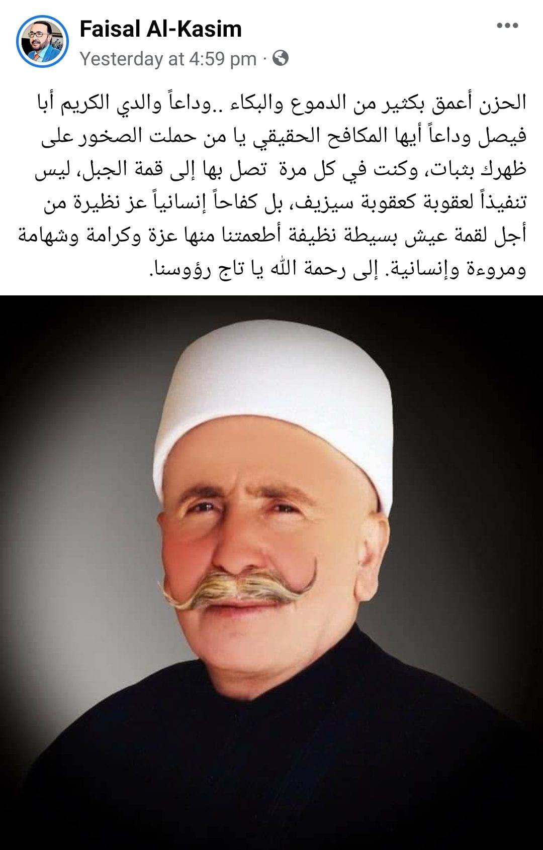 والد الإعلامي الدكتور فيصل القاسم في ذمة الله2022-01-20 02:37:35 -